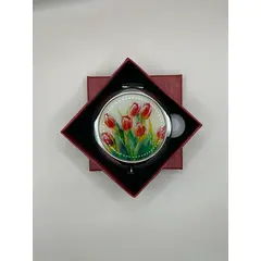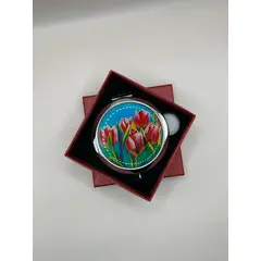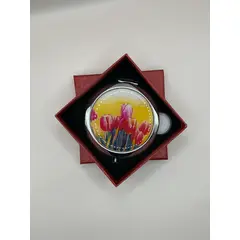 Компактное двустороннее карманное зеркало. Имеются два зеркала - обычное и с увеличением. В комплекте подарочная коробочка. Размер коробки: 8,5*8,5