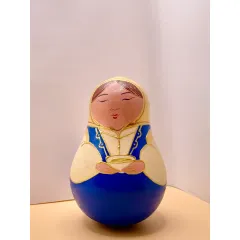 Неваляшка с ручной росписью. При раскаче создает приятную мелодию от колокольчиков. Материал: дерево, акрил, лак Высота: 12 см. Диаметр: 7,5 см.