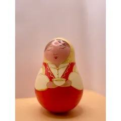 Неваляшка с ручной росписью. При раскаче создает приятную мелодию от колокольчиков. Материал: дерево, акрил, лак Высота: 12 см. Диаметр: 7,5 см.