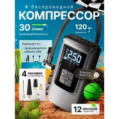 Комплектация: Компрессор автомобильный портативный - 1 шт насадки