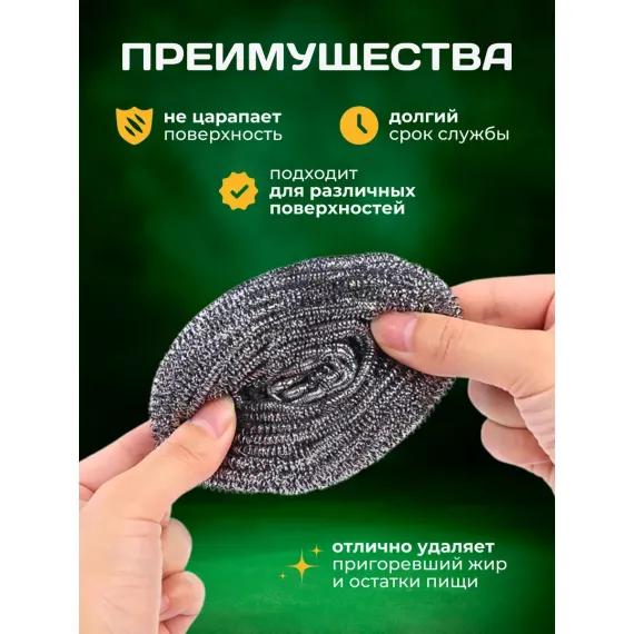 Представляем Вашему вниманию наш уникальный набор металлических губок, который станет незаменимым помощником в  хозяйстве! Эти губки идеально подходят для уборки на кухне, в ванной и для мытья посуды и сантехники.