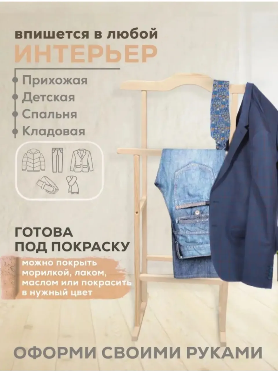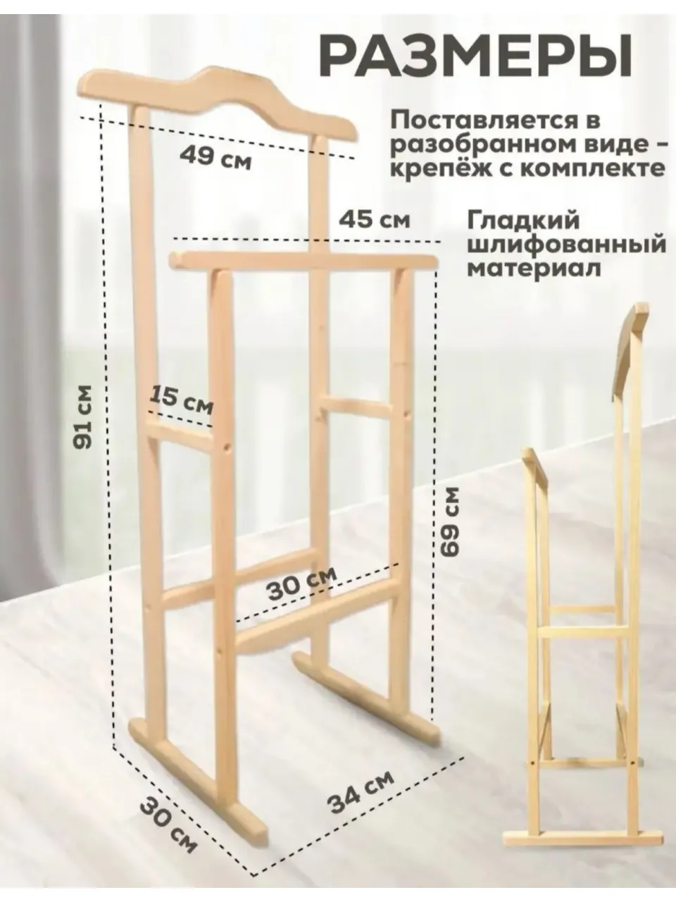 Устали от беспорядка в спальне, детской, гардеробной? Лучшее решение вашей проблемы – вешалка для одежды напольная деревянная с плечиком нашего собственного производства. Лучший друг вашему уюту и порядку. Бруски 2х2 см, надежная конструкция этажерки выдержит вес до 7 кг. Мебель с перекладинами для одежды в дом изготовлена из дерева, отшлифована, но не покрыта. Лучшее экологическое решение. Творите и создавайте свой уникальный стиль, покрыв аксессуар морилкой лаком маслом, белой краской или любой другой, придать желаемый цвет и стиль, чтобы вписать в интерьер. Вешелка костюмная дополняет интерьер для прихожей, детской комнаты, спальни, гостиной, балкона, кладовой, дачи, гардероба. Передвижная вешалка стеллаж - подходит для школьной формы. Можно использовать как стойку для отпаривателя, сушилку, место хранения для зонтов. Закругленные края плечиков для одежды не оставят складок. Устойчивая конструкция для вещей будет надежно удерживать любую одежду рубашки, ремни, платки шарфы, платья. Вешалка брючная имеет плечико для костюма и несколько перекладин под брюки, джинсы и т.п. Поставляется в разобранном виде.