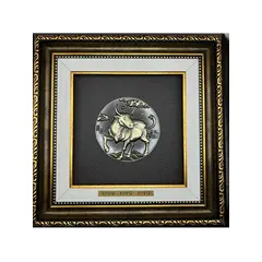 На панно изображено одно из 4 священных животных Калмыкии - Корова Коровы . Давали молоко, мясо и использовались для производства молочных продуктов. Размер: 30*30 см. Материал: кожа, металл.