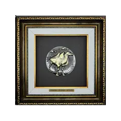 На панно изображено одно из священных животных Калмыкии -  Верблюды.   Использовались для перевозки груза и людей, а также как источник молока и мяса. Материал: кожа, металл.  Размер: 30*30 см.