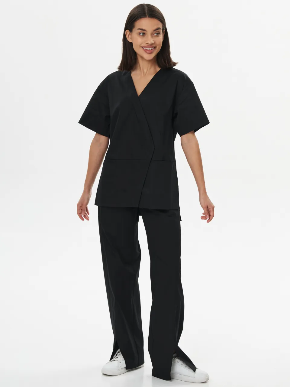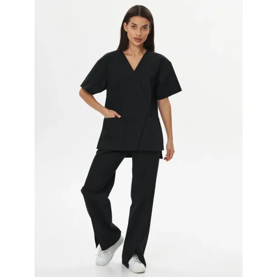 Костюм медицинский женский в стиле оверсайз сочетает в себе современный дизайн и комфорт. Свободный крой и укороченные рукава рубашки обеспечивает свободу движений, а V-образный вырез придаёт образу элегантность. Брюки отличаются прямым кроем и удобной резинкой в поясе, дополненные стильными разрезами снизу обеспечивая свободу движений и идеальную посадку, боковые карманы удобны для хранения необходимых мелочей. Cостав ткани обеспечивает мягкость, воздухопроницаемость и эластичность. Медицинский костюм в 6 разных оттенках, позволяет выбрать подходящий вариант для вашего стиля. Подходит для медицинского персонала, мастеров красоты, массажистов и других профессий, обеспечивая комфорт и профессиональный внешний вид.
